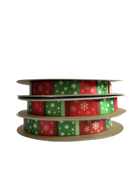 10mm x 20m Satin Ribbon (Stars & Snowflakes)