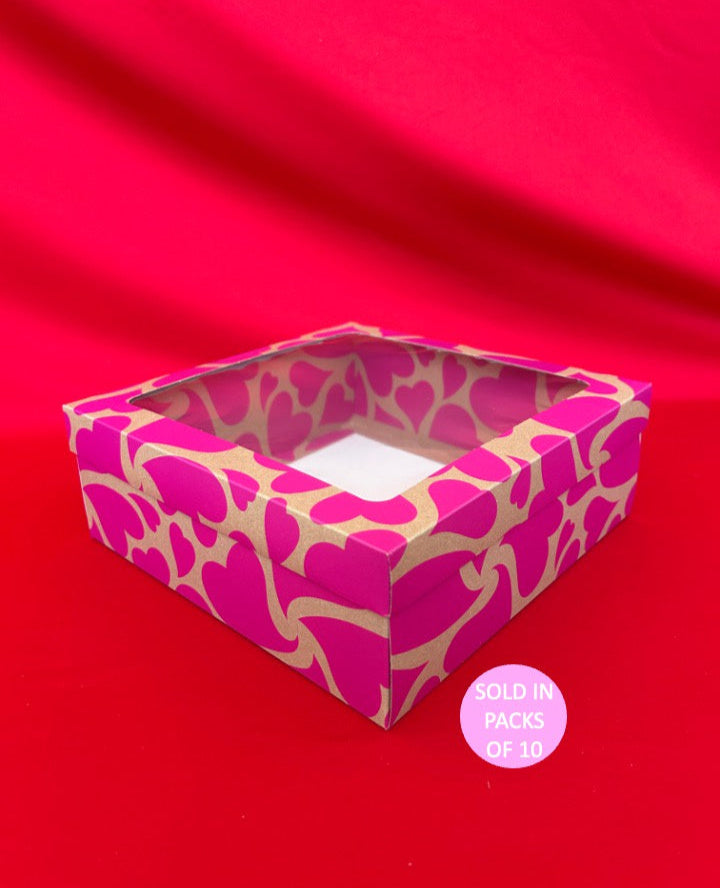 Bento Cake Box (Kraft) 250x250x90mm (Pink Whirlwind Love) (Pack of 10)