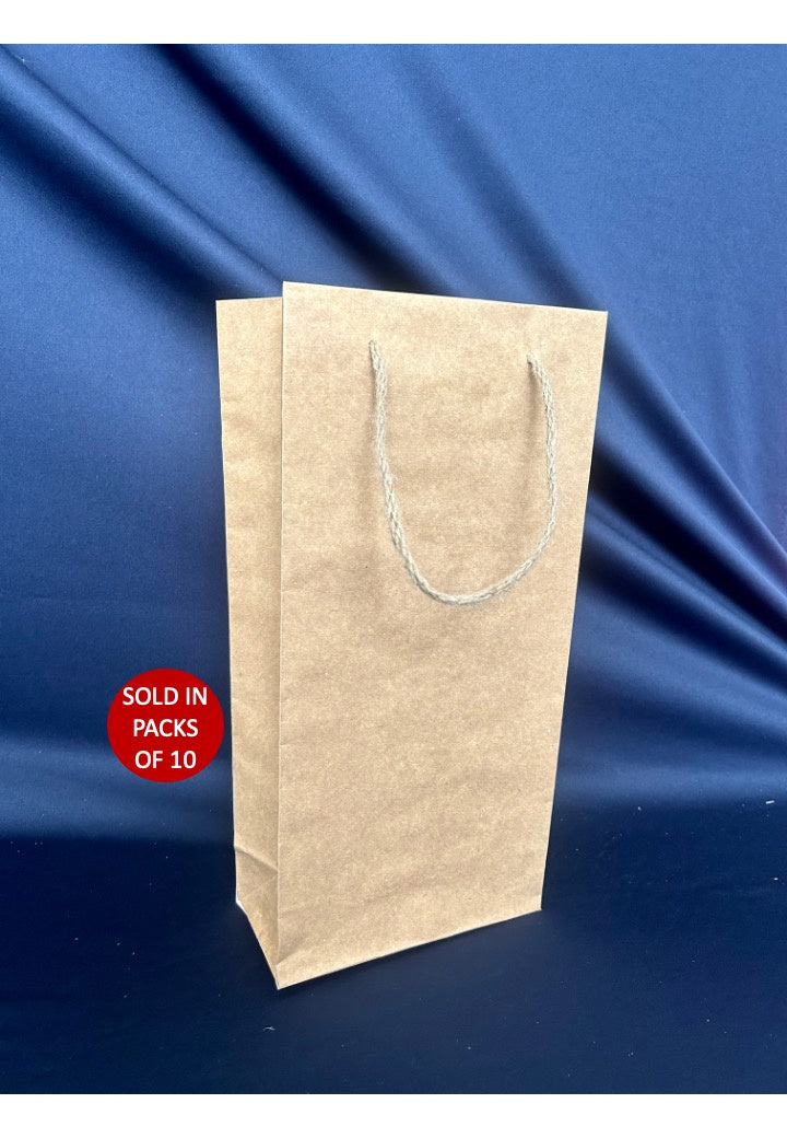 Description: The Brown Double Wine Bottle Bag (170x85x355mm) – Pack of 10 is a sleek and practical packaging solution designed to hold and transport two wine bottles securely. Made from high-quality, durable material, this bag provides a sturdy structure that ensures bottles remain protected while offering an elegant, polished look. The crisp brown finish makes it perfect for gift packaging, retail use, and special events, while the reinforced handles allow for easy carrying. Whether for wineries, corporate gifting, or personal celebrations, this versatile and stylish wine bag enhances presentation while keeping bottles safe.