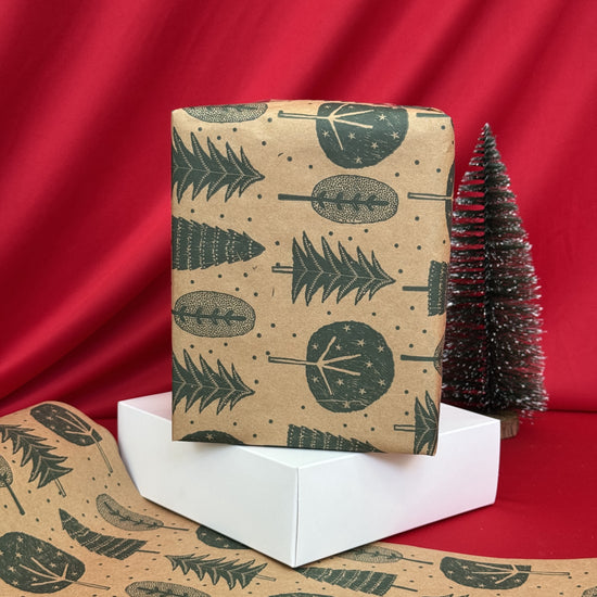 Description: Wrap your gifts in festive cheer with our Christmas Trees Gift Wrap. Printed with vibrant green Christmas trees on a natural kraft background, this wrap brings a warm, rustic holiday feel to any present. Perfect for all your seasonal gifting, whether it’s for family, friends, or colleagues.