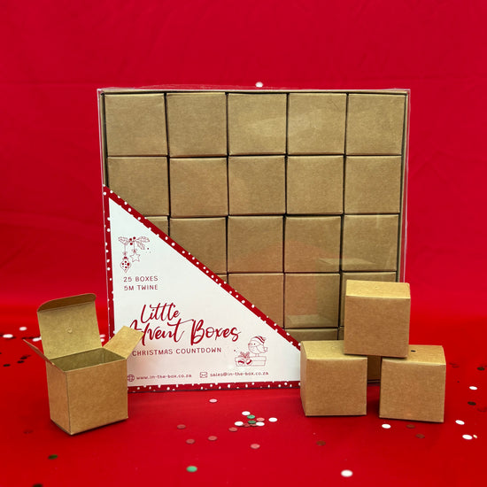Make the countdown to Christmas fun and exciting! These Little Advent Boxes are the perfect DIY option. Decorate as you wish. Fill with Christmas cookies, sweets, treats, toys and more!Tiny holes in the lid of the boxes ensure that you can hang them with twine. These are created and packaged in Cape Town, South Africa!