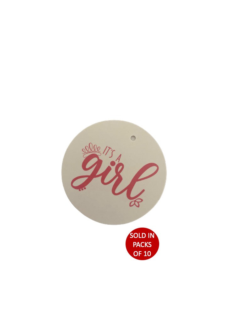 It's a Girl Tag Tiara (Pink on White)