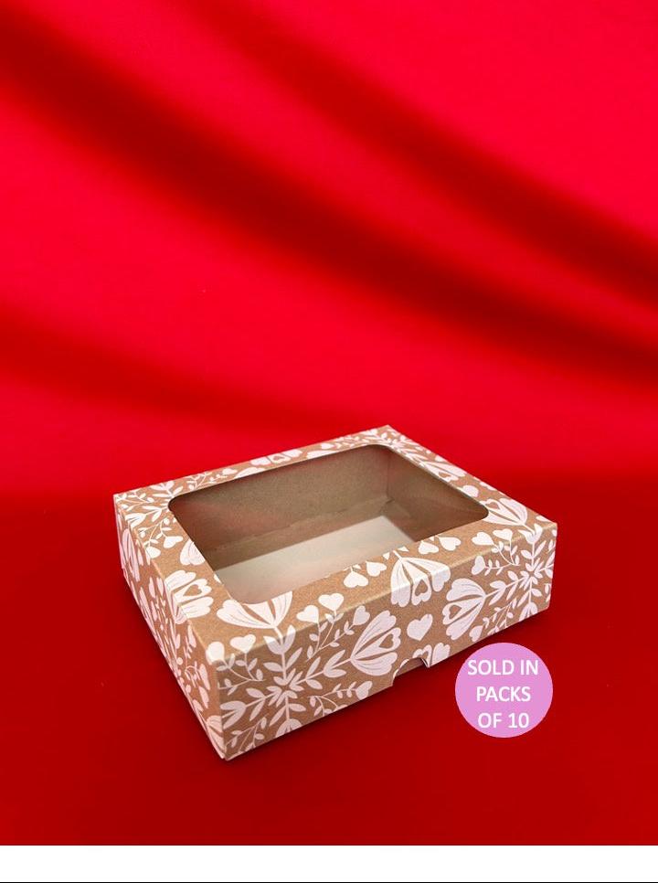 Kraft Biscuit Box with Window (White Heart Blooms) 175x135x50mm (Pack of 10)