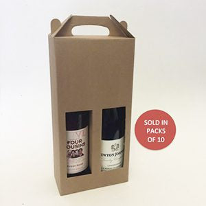 Kraft 2 Bottle Wine Box With Handle (Pack of 10)