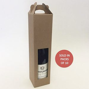 Kraft Single Bottle Wine Box With Handle (Pack of 10)