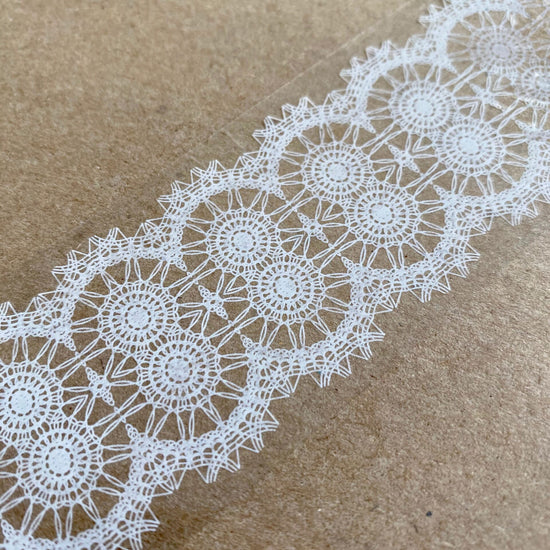 Description: Add a touch of elegance to your packaging, crafts, or décor with our White Lace Tape. Easy to use and self-adhesive, it’s perfect for gift wrapping, scrapbooking, and creative projects that need a delicate, decorative finish.