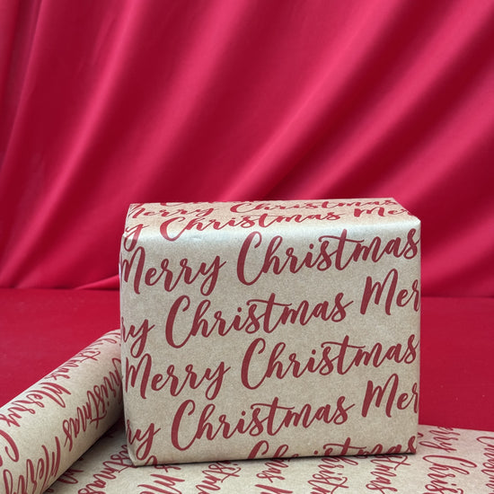 Description: Spread holiday cheer with our Merry Christmas Gift Wrap. Featuring bright red “Merry Christmas” lettering on a natural kraft background, this wrap adds a warm and festive touch to every gift. Perfect for family, friends, or office presents.