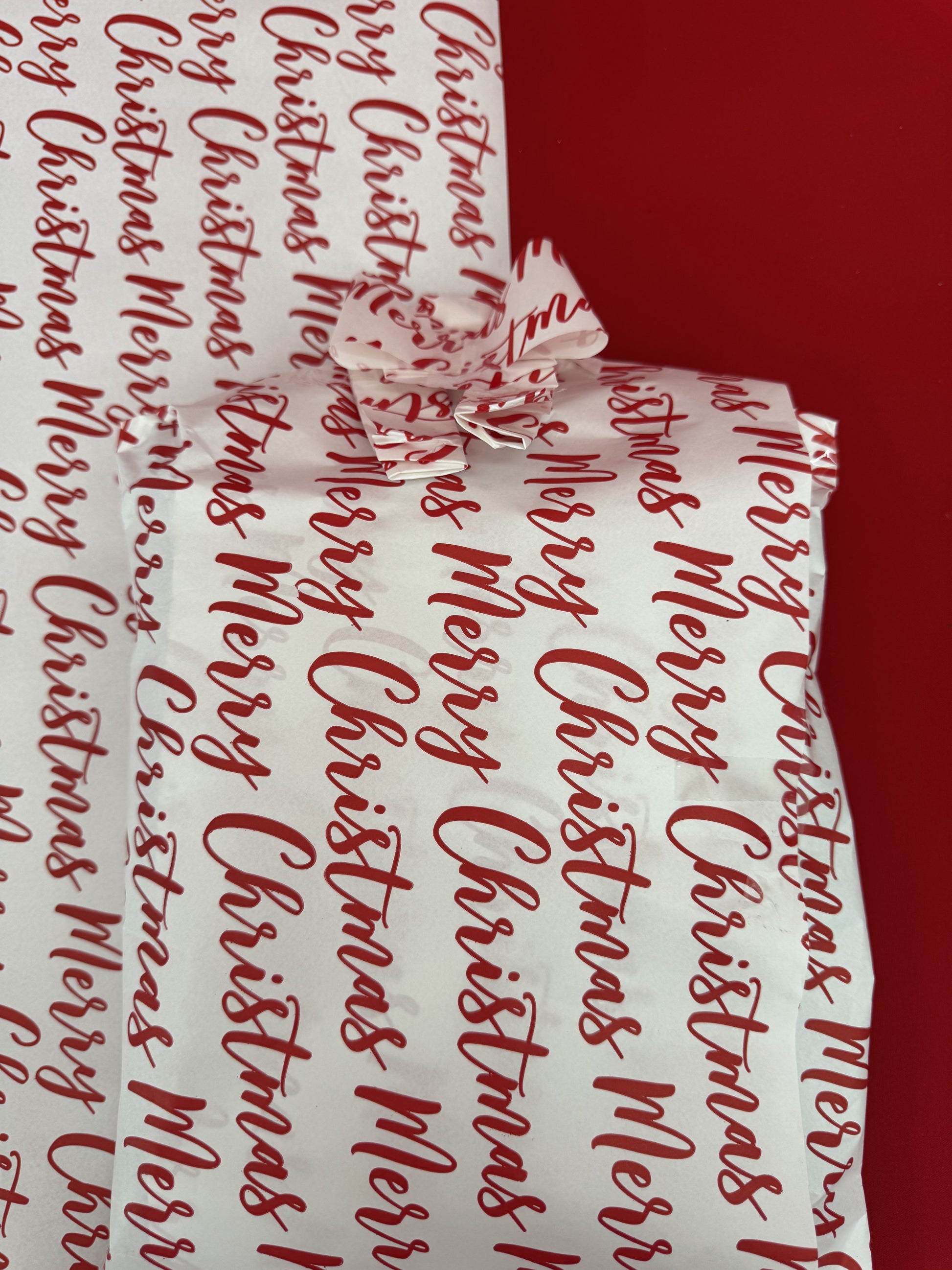 Description: Celebrate the season with style using our Merry Christmas Gift Wrap. Featuring bright red “Merry Christmas” lettering on a crisp white background, this wrap adds a cheerful and festive touch to any present. Perfect for family, friends, and office gifts.