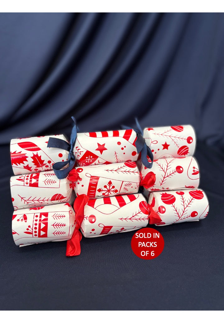 Printed DIY White Crackers (Red Tinsel Toes) Pack of 6