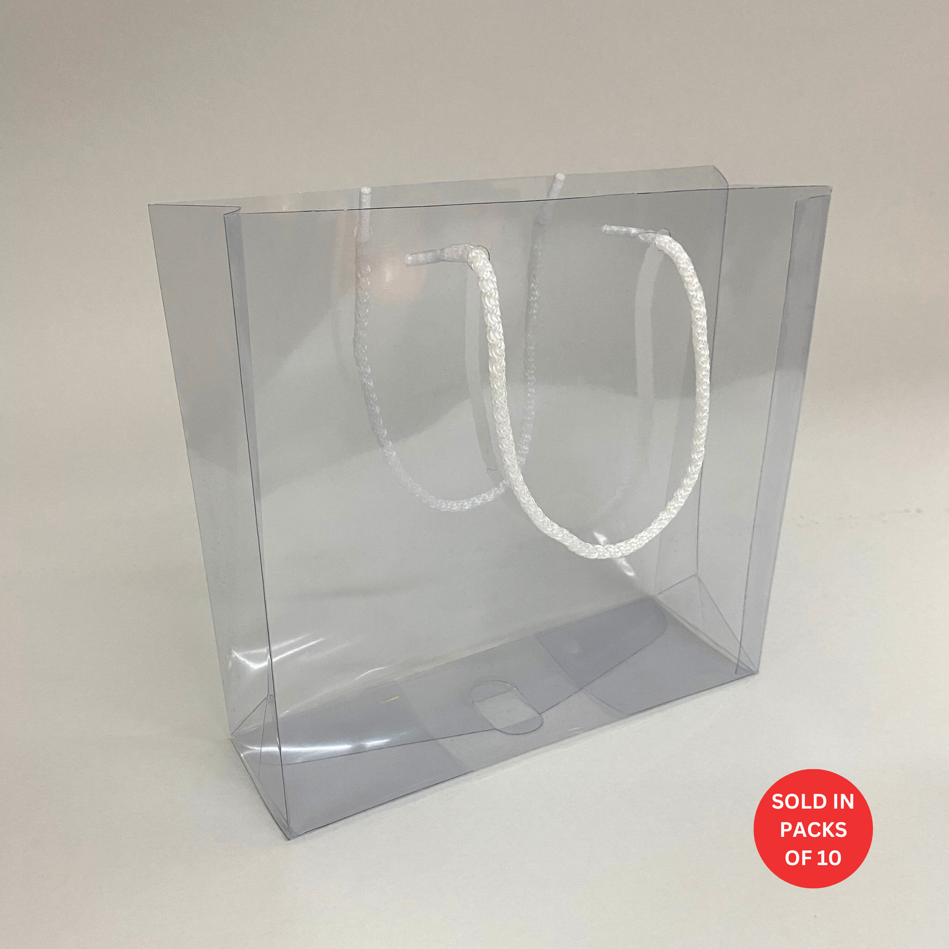 Description: Elevate your gift presentation with our PVC Gift Bag, featuring elegant white handles and measuring 210x200x70mm. This stylish bag is perfect for a variety of gifts, from small treats to accessories. Made from high-quality, transparent PVC, it provides a clear view of the contents while offering durability and protection. The sophisticated white handles add a touch of refinement and ensure comfortable carrying. Ideal for boutiques, gift shops, or personal celebrations, our PVC Gift Bag with White Handles combines practicality with a polished, modern design.