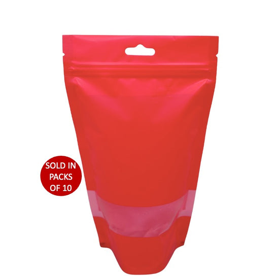 Red Stand Up Pouch with Window (130x220mm) (Pack of 10)
