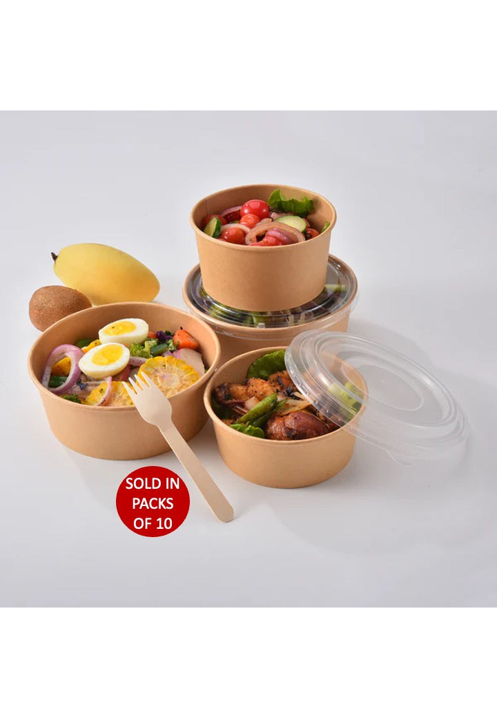 Round Paper Salad Bowl (26oz) with PET Lid (Pack of 10)