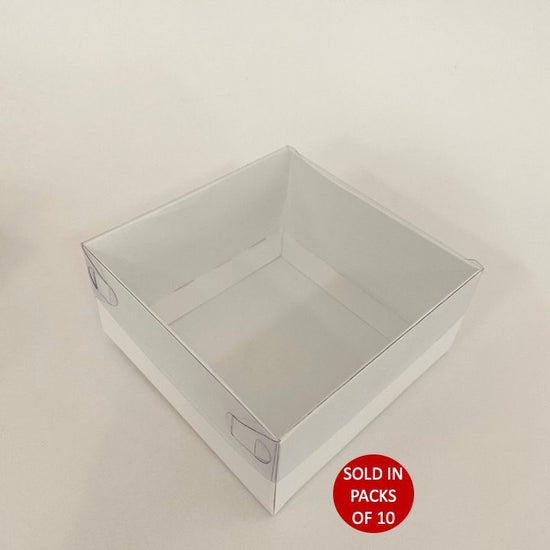 Description: Present your products elegantly with our Square Box with PVC Lid in White, measuring 125x125x60mm. This box combines a clean white finish with a clear PVC lid, perfect for showcasing gifts, baked goods, or delicate items while keeping them protected. Ideal for retail displays, events, or gift packaging, it offers both visibility and style. Elevate your presentation with this versatile and sophisticated box. Enhance your packaging with our range of products, including twine, ribbon, box fillers, and more, to add a personal touch.