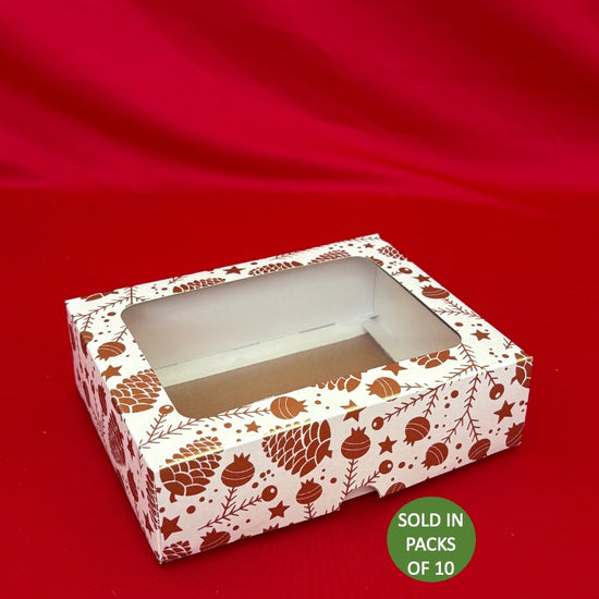 White Biscuit Box with Window (Gold Pinecone Party) 175x135x50mm (Pack of 10)