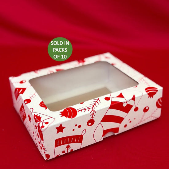 White Biscuit Box with Window (Red Tinsel Toes)175x135x50mm (Pack of 10)