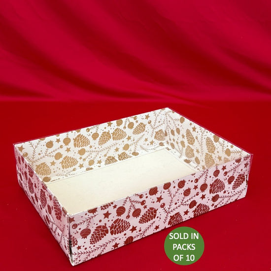White Hamper Box (300x220x80mm) Gold Pinecone Party (Pack of 10)