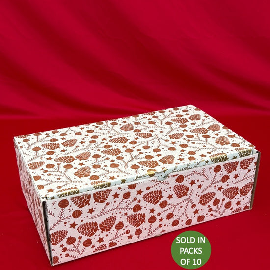 White Shoebox 349x211x111mm (Gold Pinecone Party) (Pack of 10)