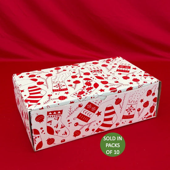 White Shoebox 349x211x111mm (Red Tinsel Toes) (Pack of 10)