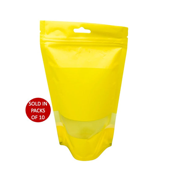 Yellow Stand Up Pouch with Window (130x220mm) (Pack of 10)